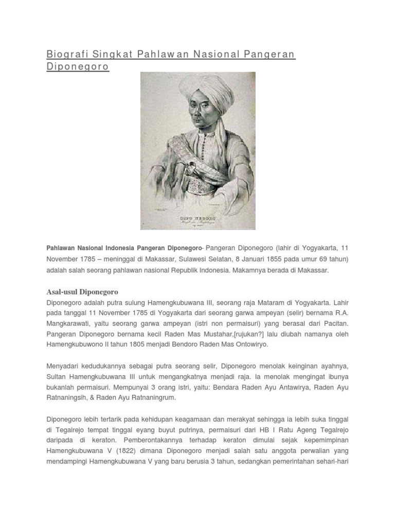 Biografi Singkat Pahlawan Diponegoro Dalam Bahasa Inggris Beserta Artinya Indonesian People Java