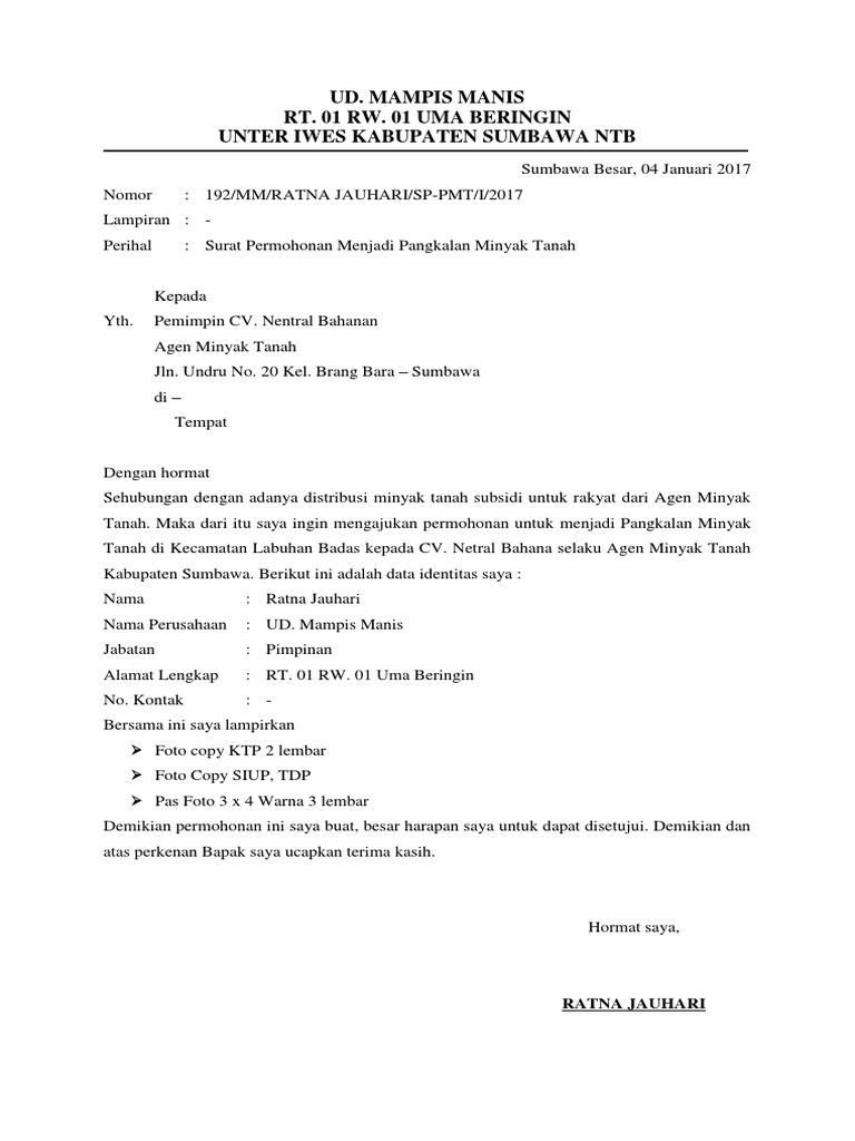 Namun tetap saja langkah di pasaran. Nomor surat kontrak terakhir agen minyak tanah daftar pangkalan minyak tanah. Mengisi dan menandatangani formulir permohonan bermeterai 6000 yang ditujukan kepada Kepala DPMPTSP Kabupaten Belu.