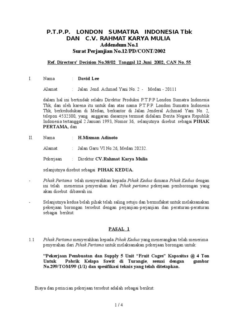 Addendum adalah ketentuan tambahan dari suatu kontrak atau perjanjian. Home current contoh lampiran adendum kontrak april 2020 42. LONDON SUMATRA INDONESIA Tbk DAN CV.