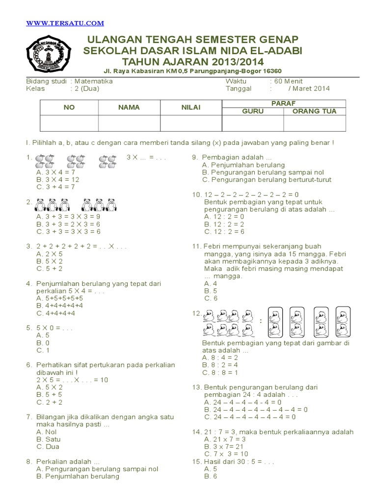 Soal Matematika Uts Kelas 2 Semester 1 Untuk Abk