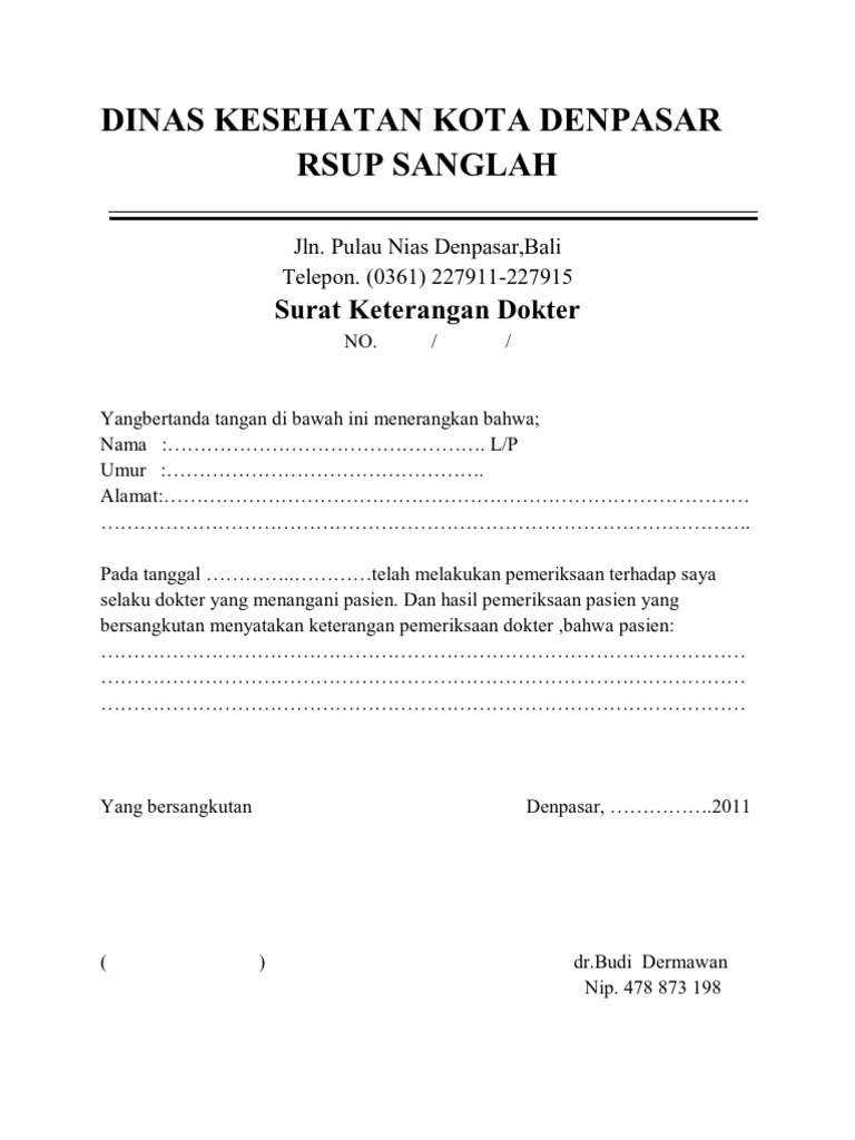 Surat dc dokter denpasar - Surat resmi biasanya banyak digunakan bagi keperluan instansi organisasi keperluan dinas ataupun kepentingan antar instansi. Contoh surat sakit dokter denpasar. LAPORAN HASIL KEGIATAN PPL SYARIF 2.