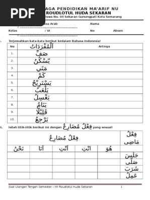 Download Soal Uts Bahasa Arab Semeter 1 Tahun Ajaran 2018 2019 Kelas 1 2 3 4 5 Dan 6 Sekolah Dasar Islam