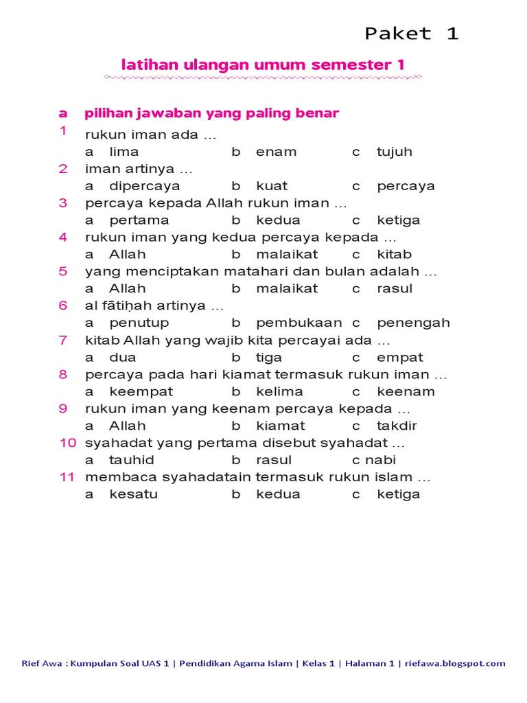 Soal Uas Agama Islam Kelas 1 Sd Semester 2